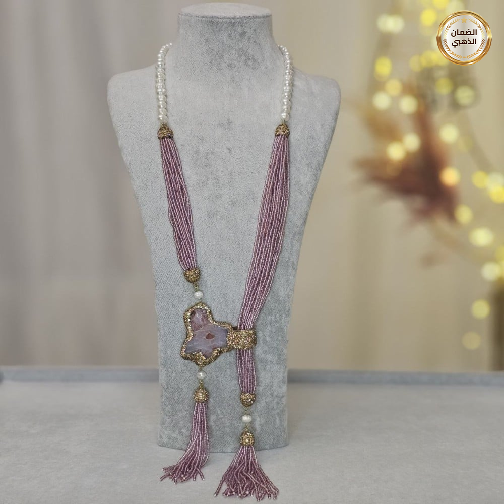 عقد لؤلؤ زراعي بتعليقة عقيق مرصعة بأحجار الزيركون لإطلالة تأسر القلوب وتلفت الانتباه