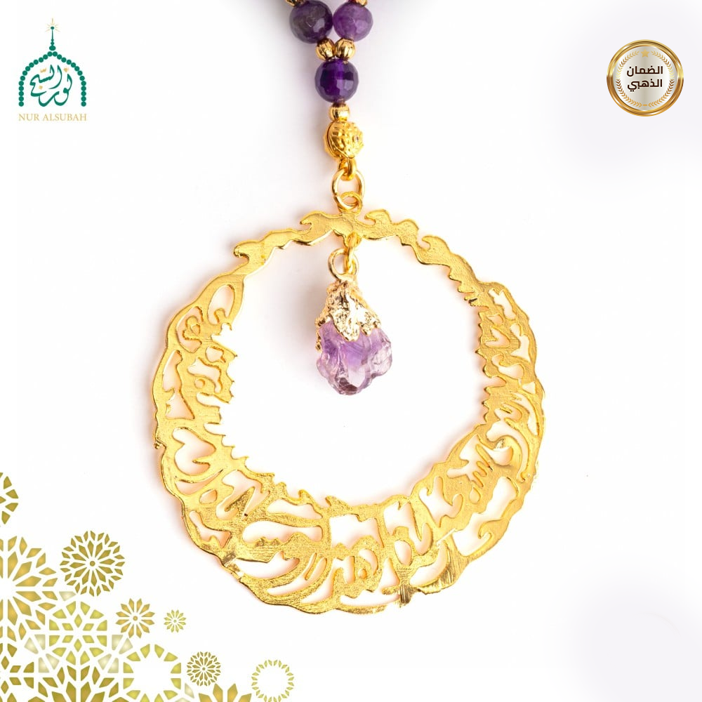 تعليقة سيارة مصممة من حجر الاماتيست الطبيعي مع عبارة مطلية بالذهب